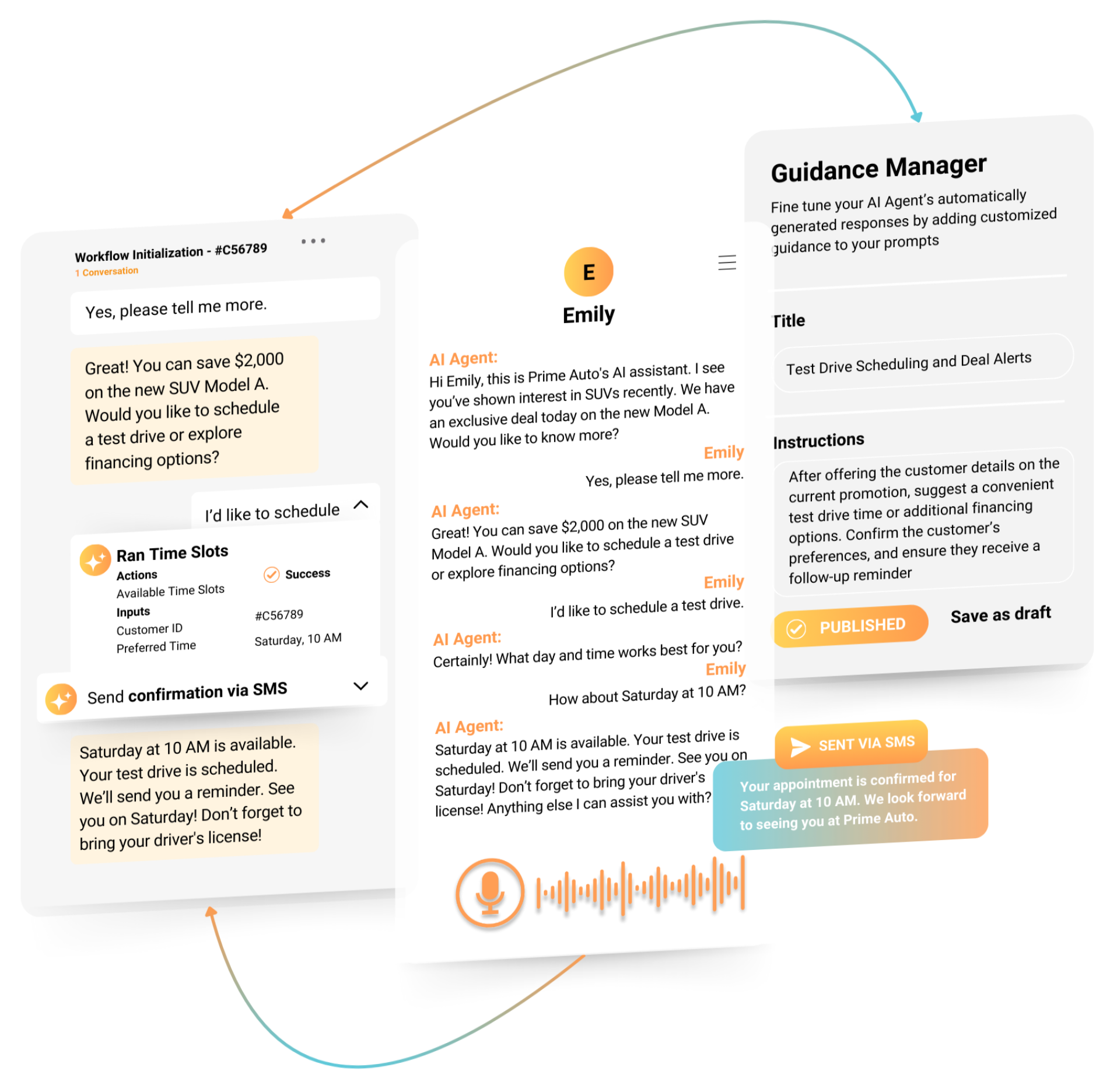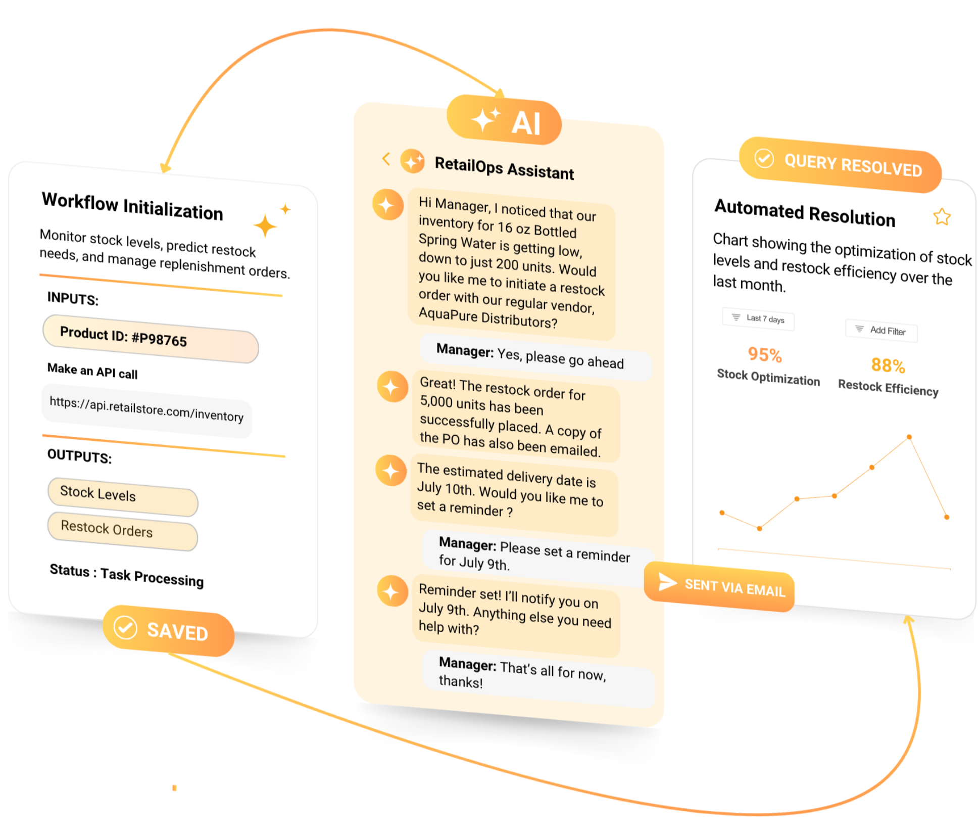 Automate routine tasks such as data entry, inventory management, appointment scheduling, and more. Our AI agents integrate with your business systems to provide real-time updates and streamline workflows, allowing your staff to focus on strategic activities that drive growth and innovation.