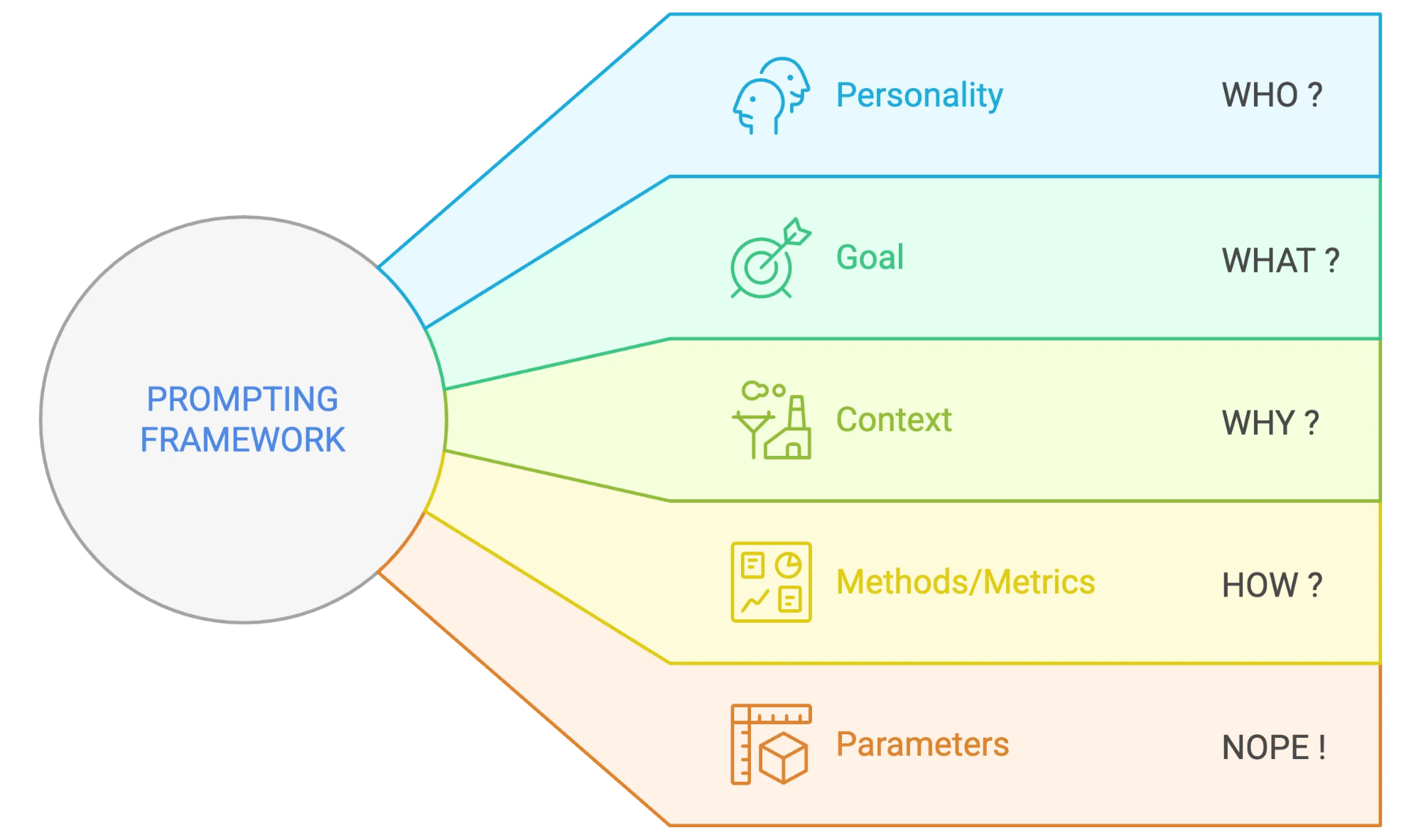 PERSONALITY + GOAL + CONTEXT + METHODS/METRICS + PARAMETERS