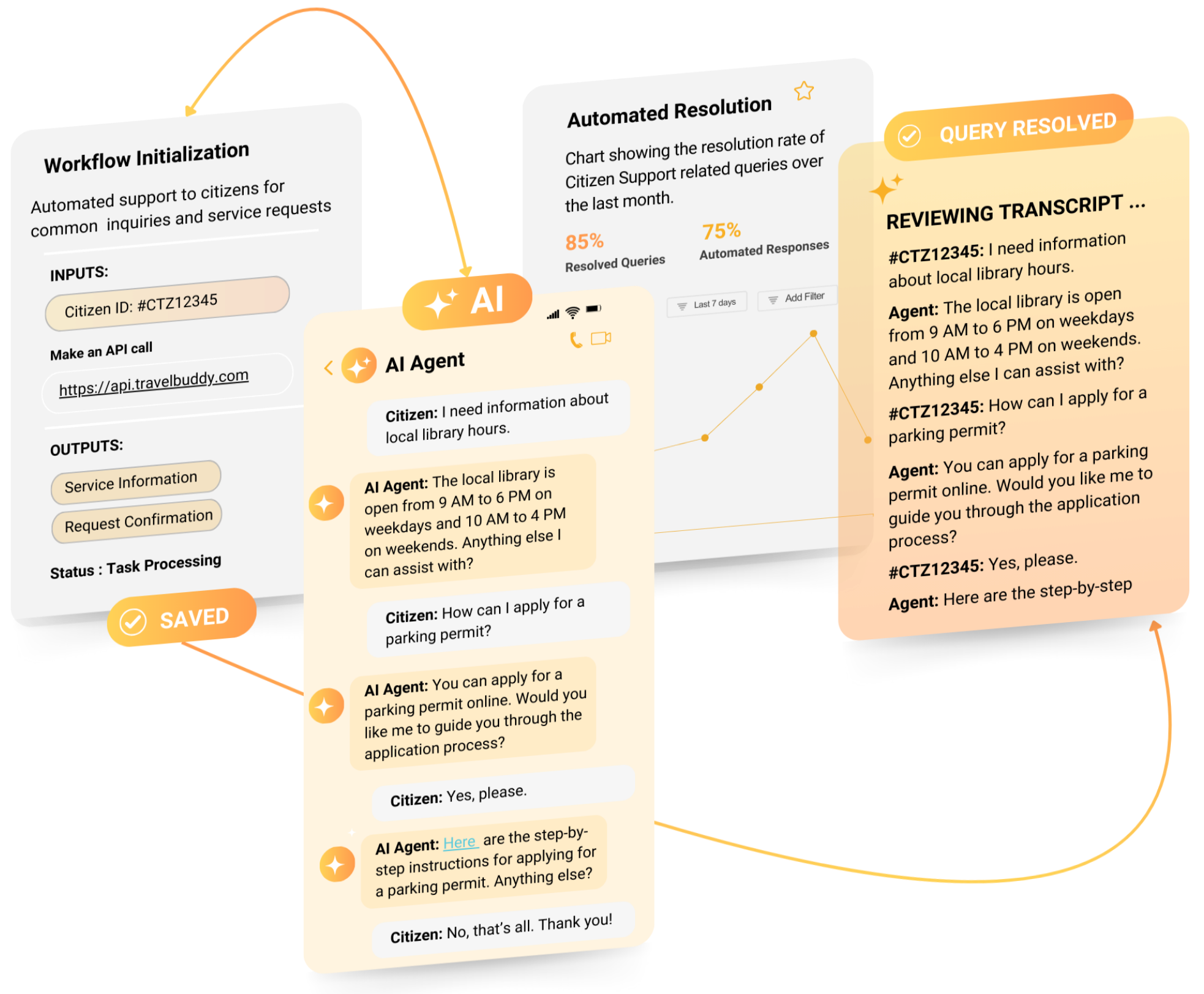 - Seamless Integration: Connect to existing tools and call center software for personalized resolutions. Route complex issues to human agents with full context.