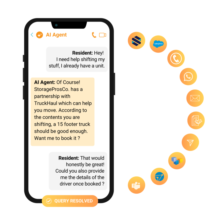 - 24/7 Voice + Chat Support → Answers after-hours calls, checks availability, books units.
