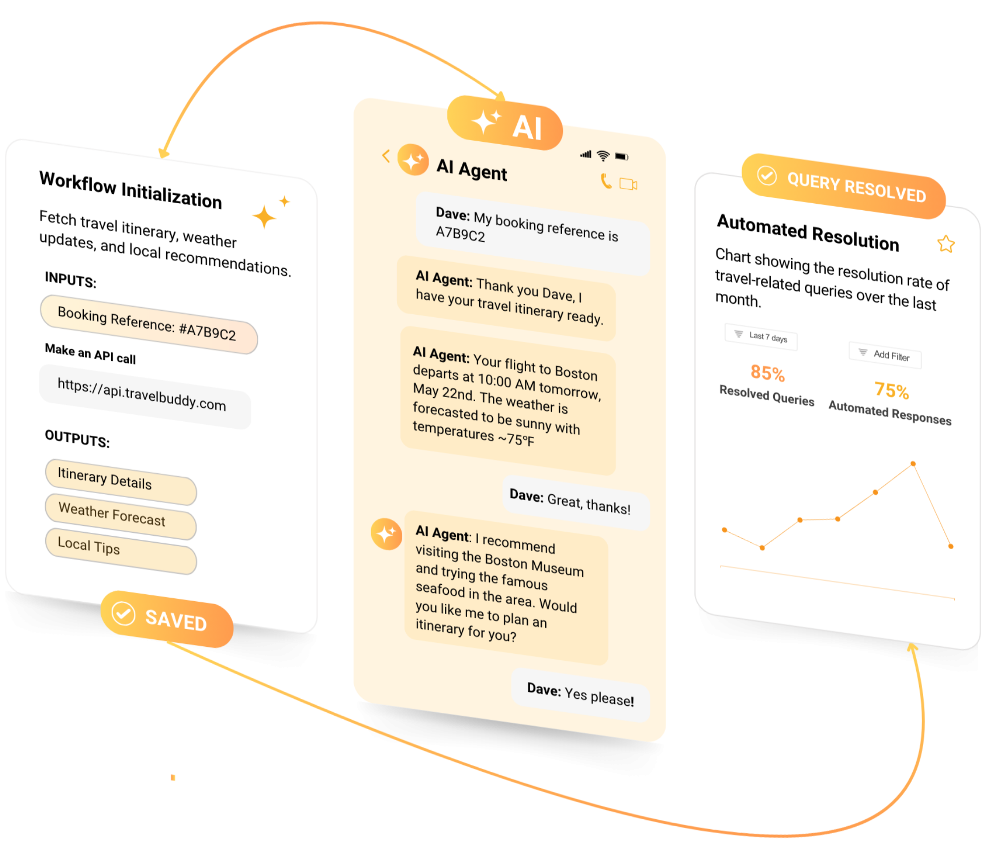 Deliver personalized experiences by leveraging customer data and preferences. Our AI agents recommend products, services, or solutions tailored to individual needs, whether it’s in retail, hospitality, or any other sector. This personalized approach enhances customer engagement and drives higher conversion rates.