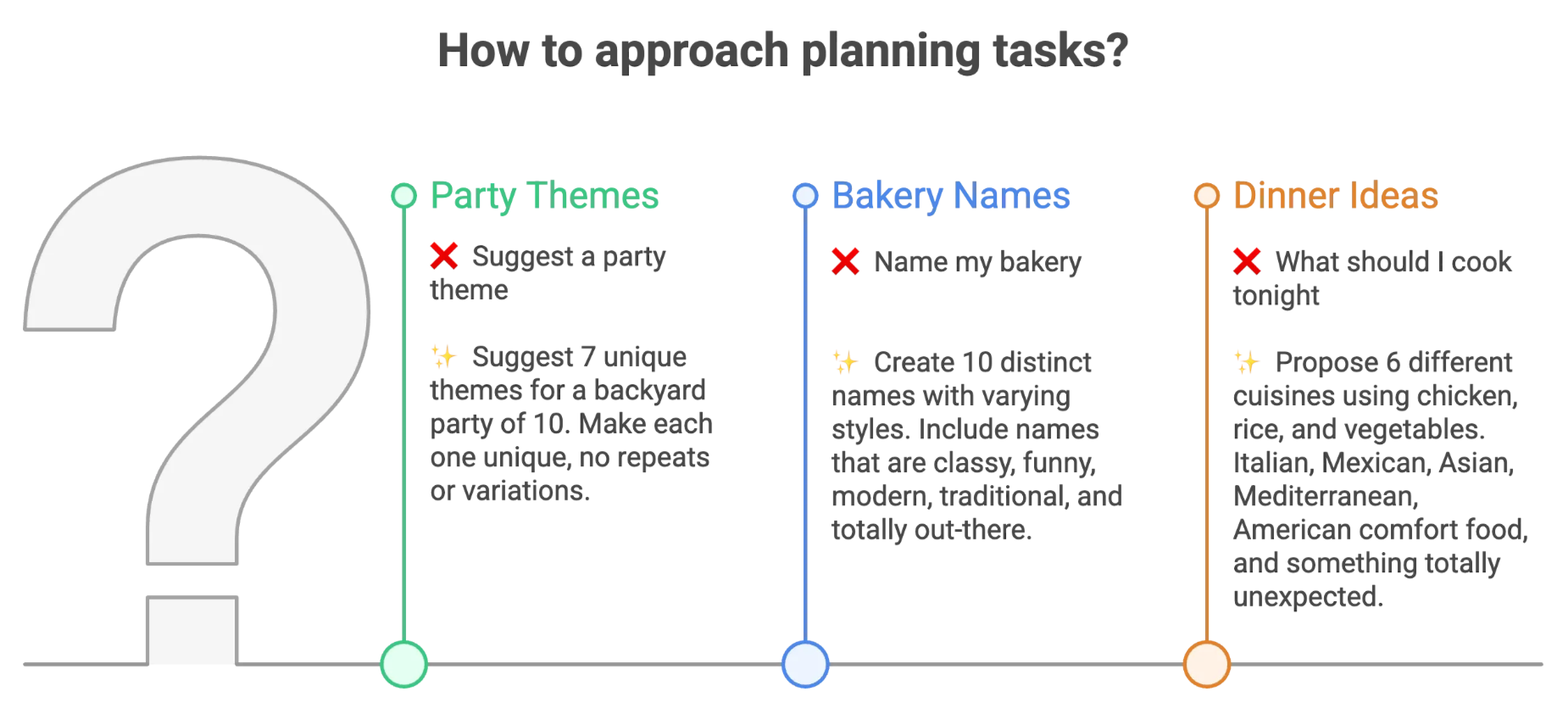You don’t need to use these techniques for every single question. Sometimes you just want to know the weather or get a quick fact. But for anything where creativity, variety, or fresh thinking matters, these approaches are game-changers.