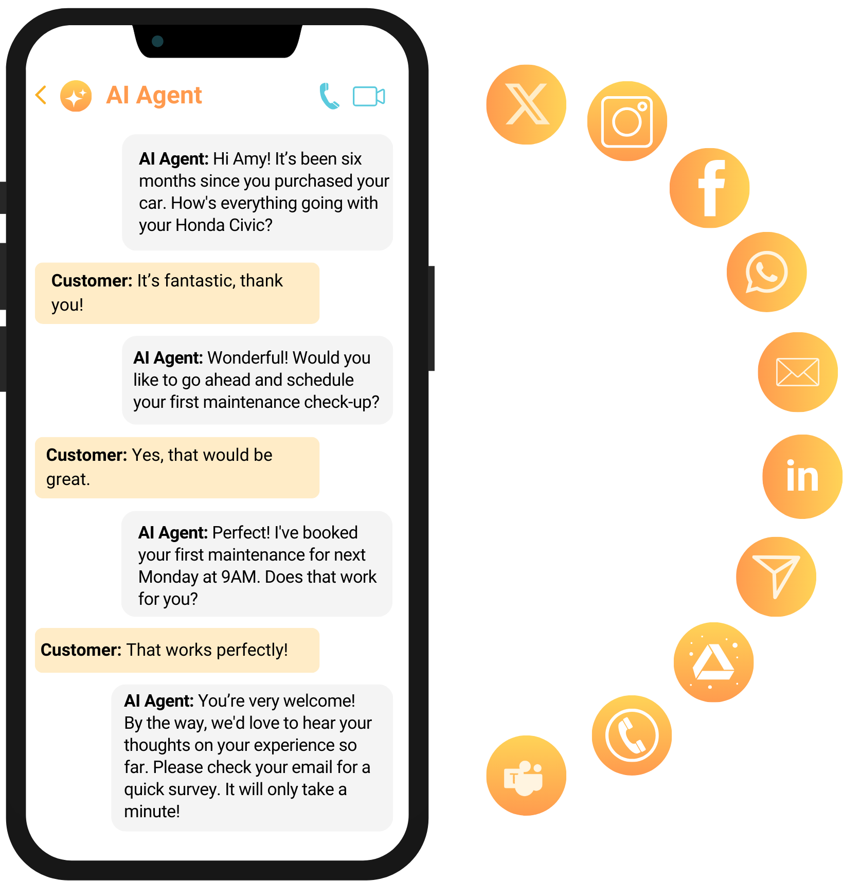 - Unified Platform: Deliver exceptional experiences across email, voice, and messaging with a single AI agent.