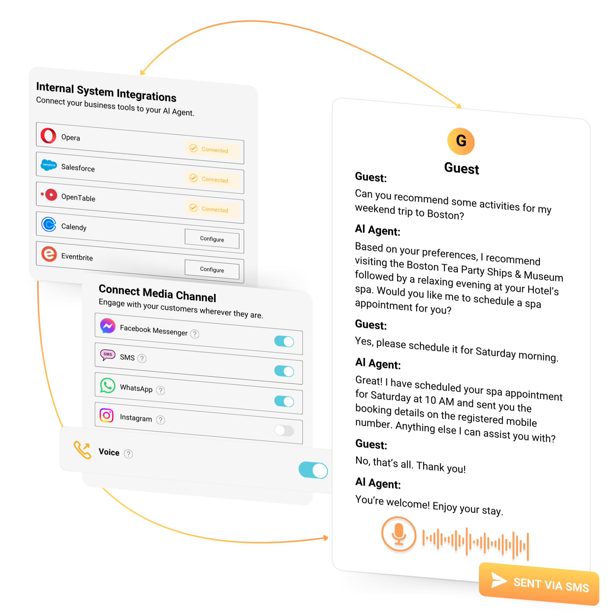 - Unified Deployment: Deploy AI agents across voice and messaging channels for consistent experiences.