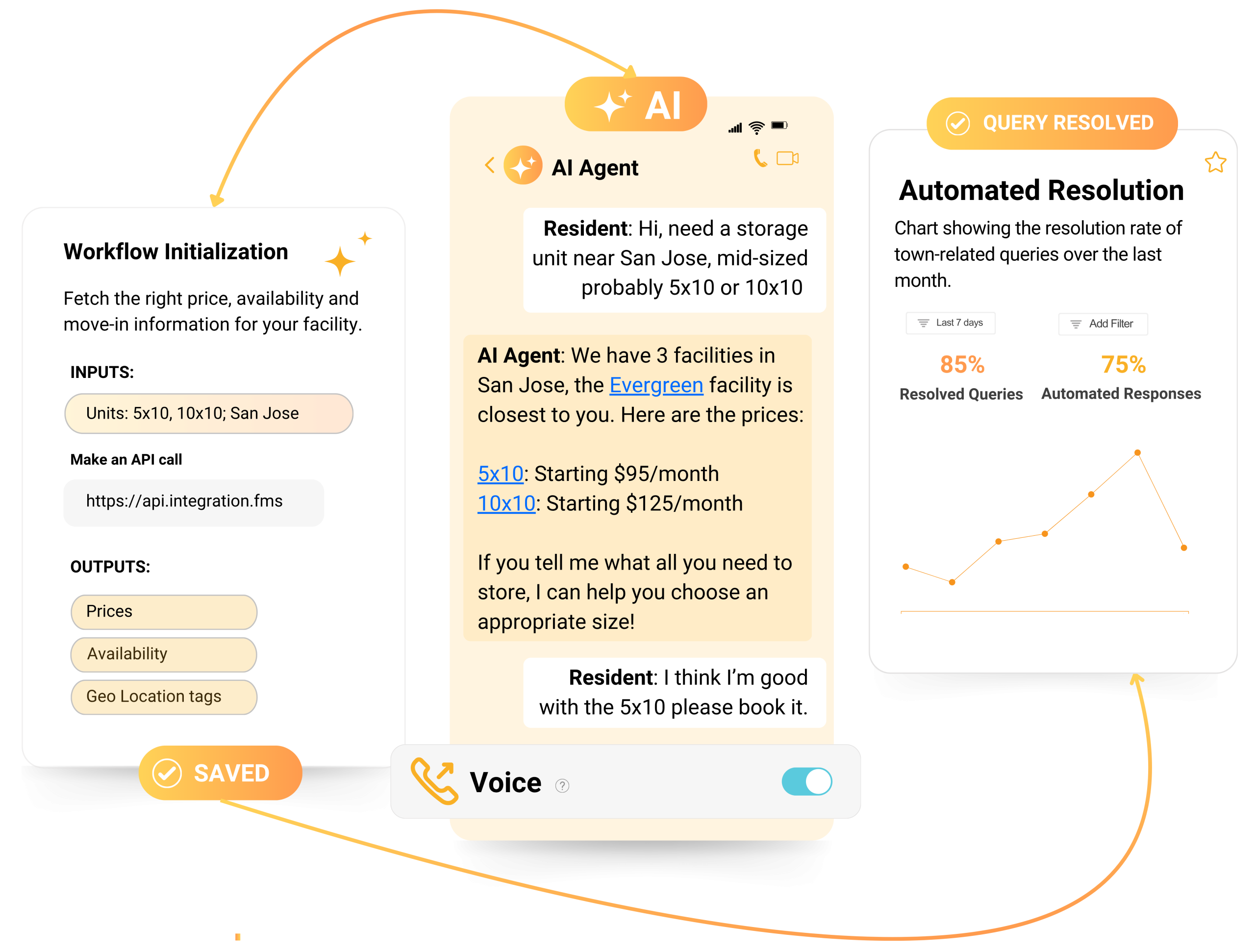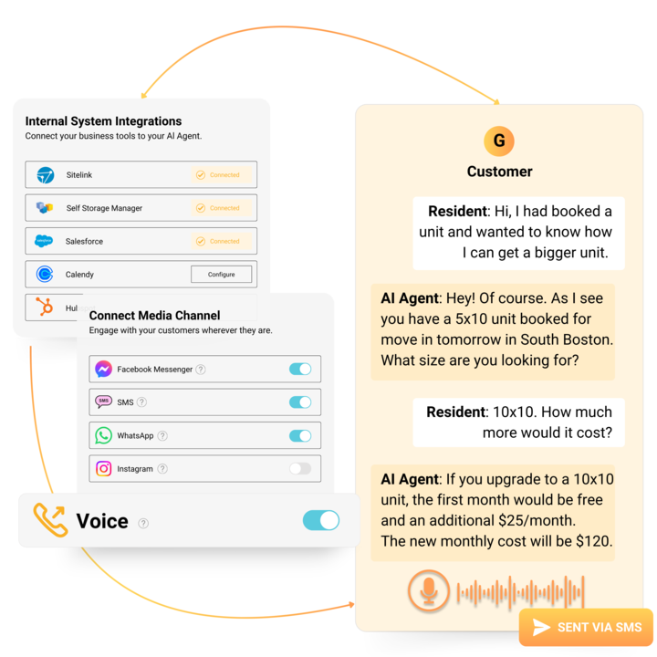 - 24/7 Voice + Chat Support → Answers after-hours calls, checks availability, books units.